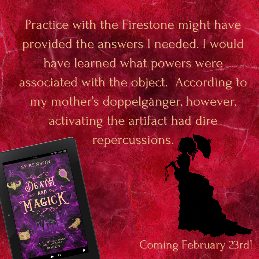 But Evaline can’t simply chase after Doctor Death’s cohorts. For starters, she’s lost the Firestone along with her crystals and grimoire. Without a spell, she can’t travel back to London unless she relies on the mage wanting her hand in marriage…